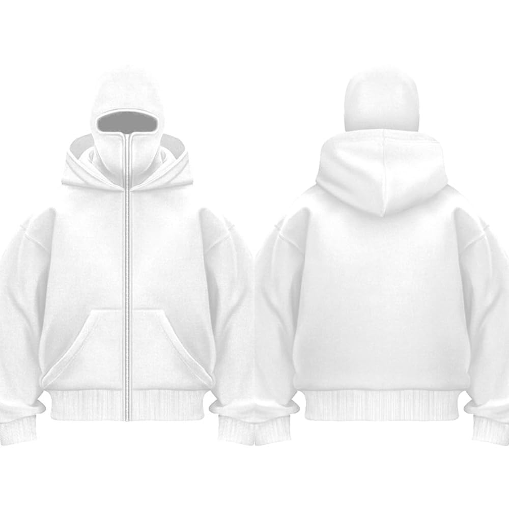 Elevate your streetwear game with our Black & White Balaclava Zipper Hoodie — where comfort meets bold design.