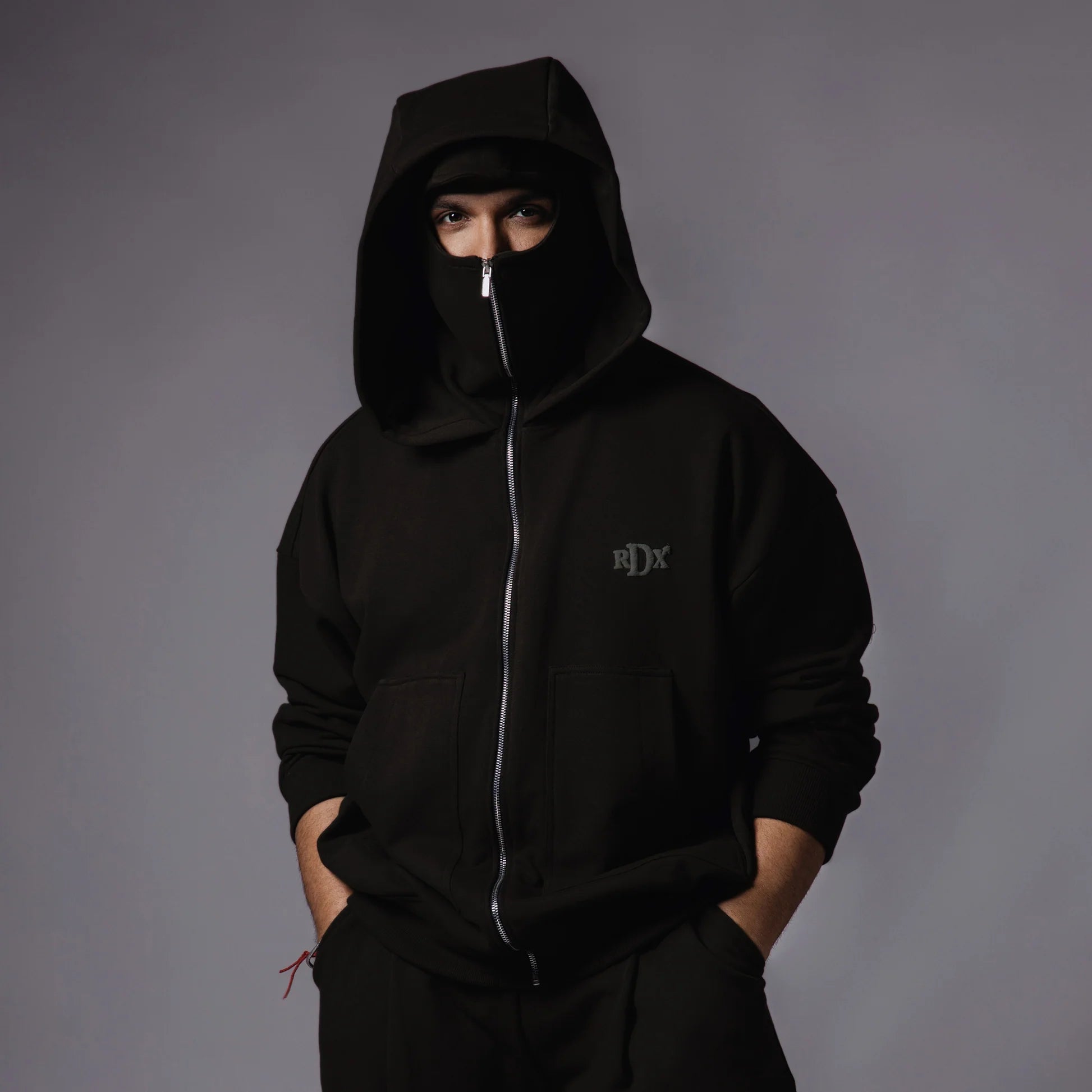 This unique hoodie comes with a built-in balaclava, giving you both style and functionality for chilly days or on-the-go adventures. Made from premium, breathable fabric, it offers long-lasting comfort and durability. The sleek full-zip design and modern fit provide maximum versatility, while the deep black color makes it a timeless addition to any wardrobe.